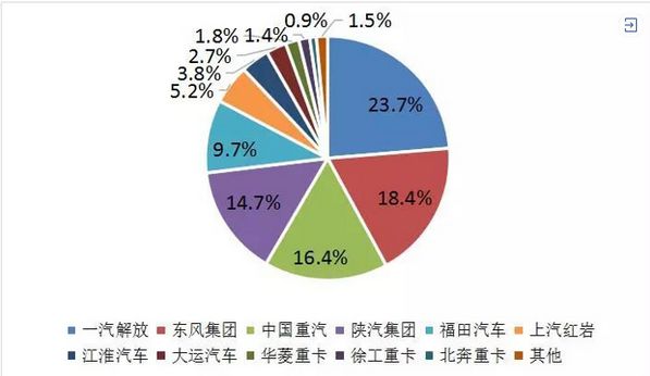 2018年1-10月重卡企业市场份额图