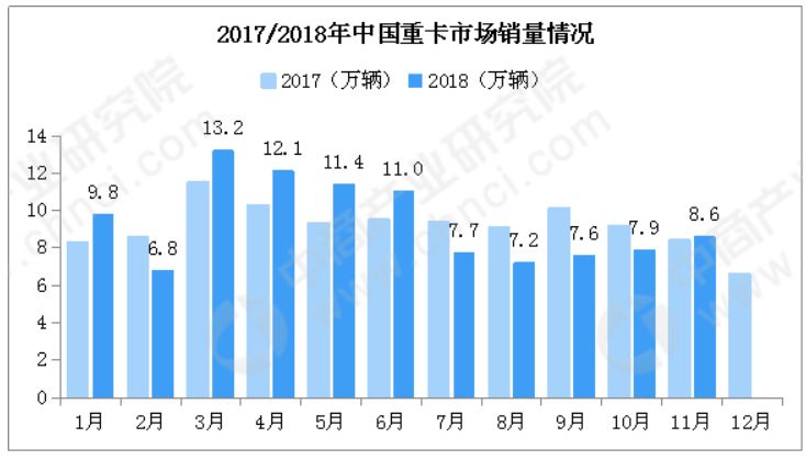 据数据显示,2018年11月,国内重卡销量为8.6万辆,环比、同比双双增长。同时,1-11月国内重卡市场累计销量已超100万辆。