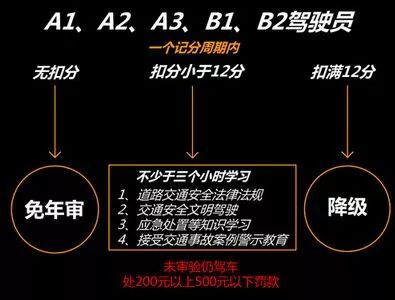 但是持有A、B证的司机,不管驾驶什么车型,哪怕只是被扣了1分,也要接受审验。还要参加不少于3小时的法律法规、交通安全文明驾驶等知识学习。